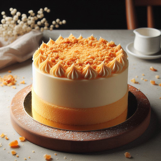 Trang trí bánh: Sau khi cốt bánh nguội hoàn toàn, phết một lớp sốt phô mai lên mặt bánh.